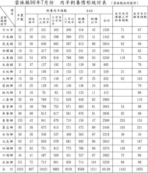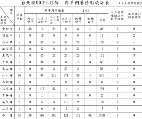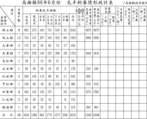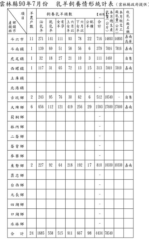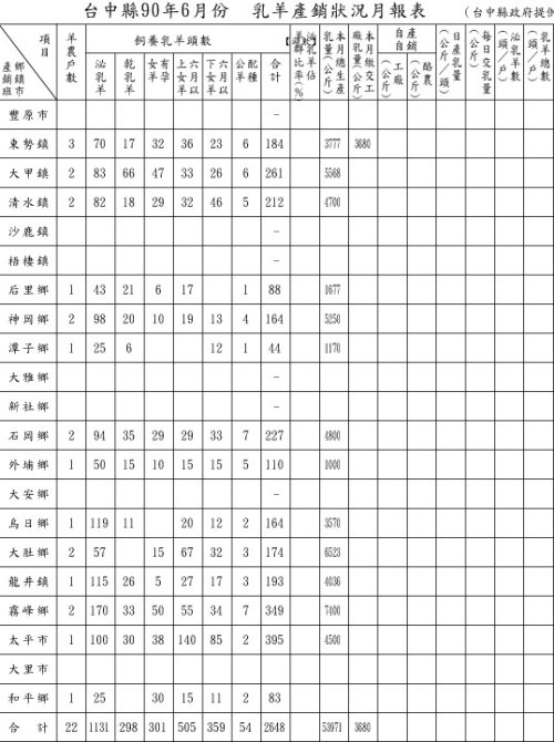 90 年 6、7月各縣市乳肉羊飼養情形統計表
