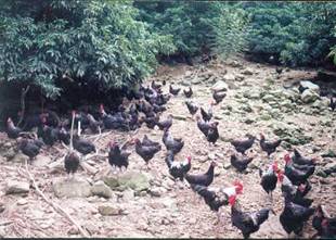 黑羽品系10場內檢定情形。此場進雞3400隻,採公母混飼,公母比為4:6。飼養者之飼養管理良好,每日所使用疫苗、藥品及死亡雞隻皆有記錄。雞隻約8週齡後即讓其自由進出雞舍及戶外之有樹蔭山坡地運動場中。檢定期間雞場並無發現明顯刺鼻氨氣味。雞隻飼養至15.6週齡才開始出售至16.5週全部出售完畢。