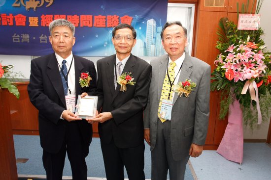 行政院農業委員會畜牧處李春進副處長(中)致2009兩岸奶業研討會兩位推手紀念牌