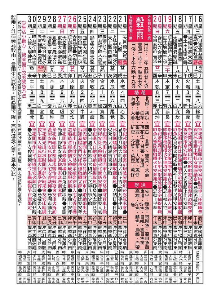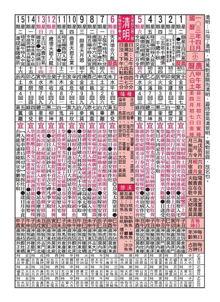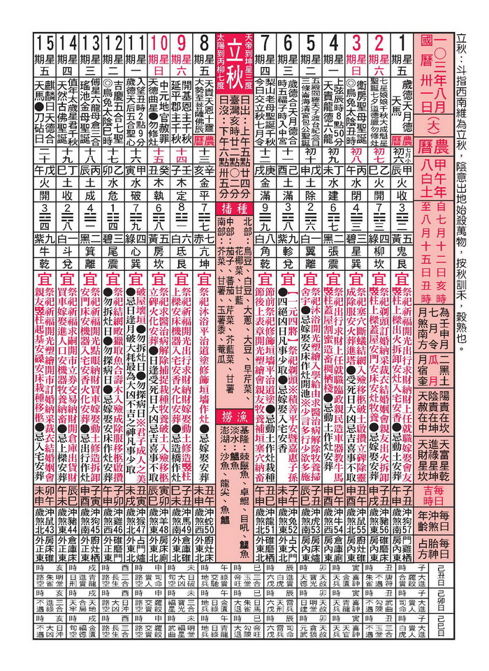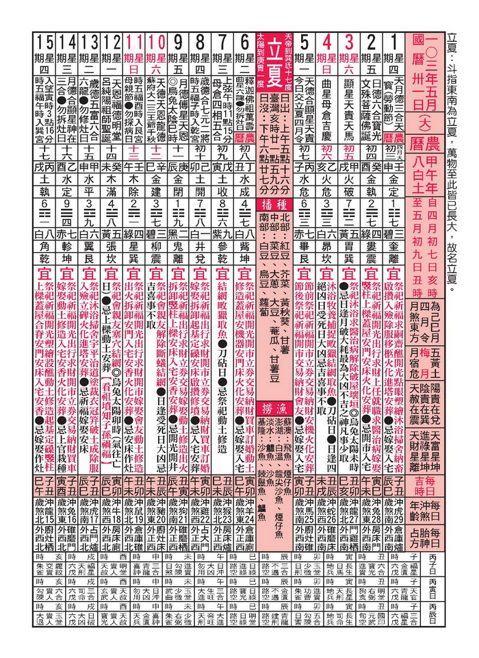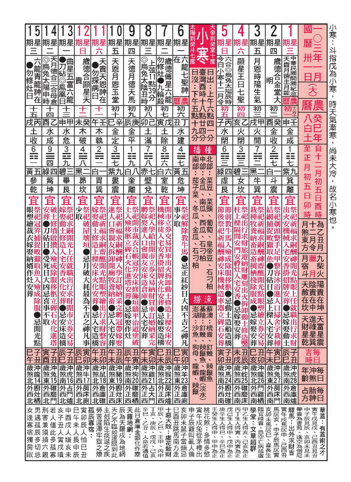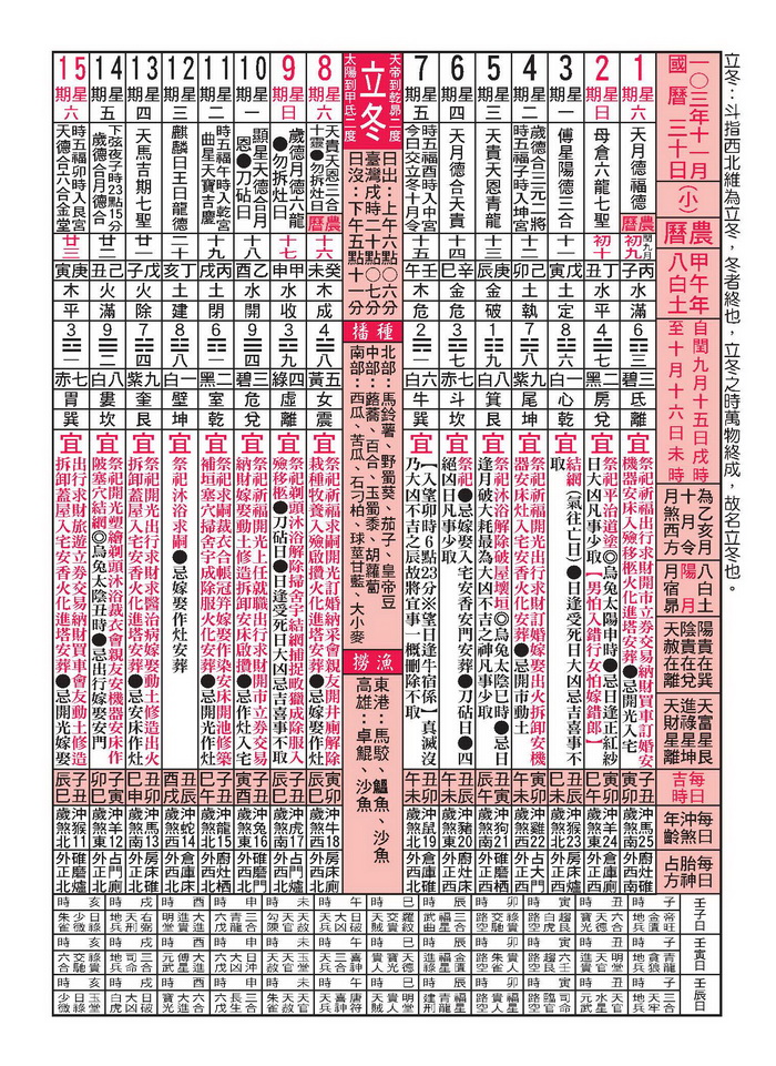 行事曆 Calendar