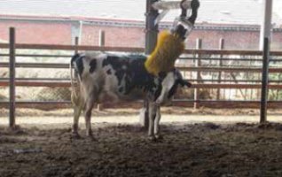 泌乳牛正在享受刷毛機,刷完