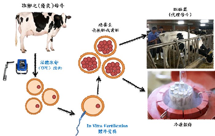 vitro fertilization, IVF),可使用優質公牛之精液及選性精液進行授精,並培養於培養箱中約7天,待受精卵發育至桑椹胚或囊胚階段,可進行胚移置(embryo