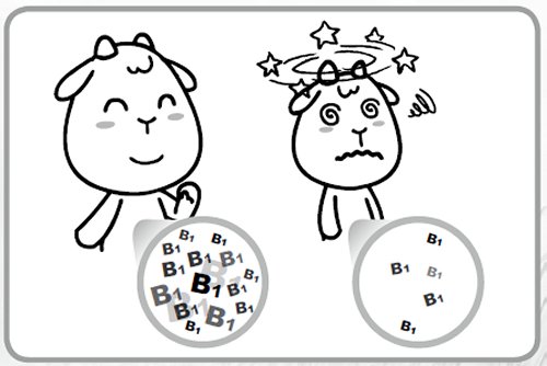 首先我們要了解腦部組織的基本構造,大腦;小腦;腦幹,外部結構是灰質組織,又稱皮質區,而內部結構是白質組織,又稱髓質區。腦灰質是由神經元細胞組成,形成極度複雜的神經迴路,它是神經中樞主要的結構,掌控多種感覺處理系統與肢體協調運動。在羊,尤其是在發育其間的羊隻,腦部組織在同時也需要養份來成熟健全,而硫胺素(thiamine)又稱維生素B1,該物質在小羊腦部灰質的成熟上扮演著重要的角色。硫胺素(thiamine)在羊的瘤胃內有專責的細菌會合成提供給羊本身吸收使用,但如果對發育中的羊隻餵食過多酸性精料則造成瘤胃內部環境過酸,迫使合成硫胺素(thiamine)的細菌減少或滅絕,如此一來就會使該羊無法攝取到足夠的硫胺素(thiamine),導致該羊大腦灰質功能與結構不健全,繼而引起神經性病症與死亡。